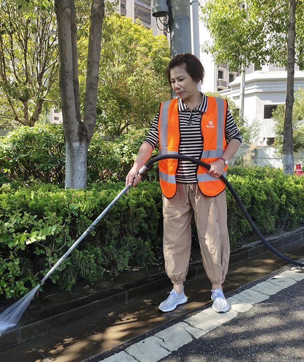 項(xiàng)目經(jīng)理羅燕妮和副經(jīng)理歐明星,每天帶領(lǐng)團(tuán)隊(duì)對(duì)項(xiàng)目所轄區(qū)域進(jìn)行徹底整理整治,對(duì)街道、人行道的衛(wèi)生死角,暴露垃圾、建筑渣土、街道兩旁可視范圍內(nèi)有礙觀瞻的廢舊物品、公交站臺(tái)的護(hù)欄、座椅和電子站牌,地下通道等城市公共設(shè)施進(jìn)行全面的沖洗、擦拭、清掃。